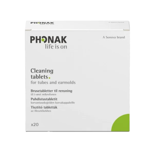 Phonak puhdistustabletteja voidaan käyttää kaikkien yksilöllisesti muotoiltujen korvatulppien puhdistamiseen. Tuotetta suositellaan käytettäväksi korvantauslaitteiden (BTE) kanssa.