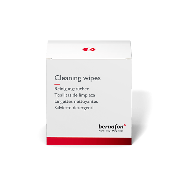 Pidä Bernafon-kuulokojeesi puhtaina ja täysin toimivina näiden kätevien pyyhkeiden avulla. Tilaa nyt, jotta voit nauttia raikkaasta ja mukavasta kuuntelukokemuksesta. Säännöllinen käyttö auttaa ylläpitämään parhaan mahdollisen korvahygienian, mikä edistää yleistä korvien terveyttä ja mukavuutta.