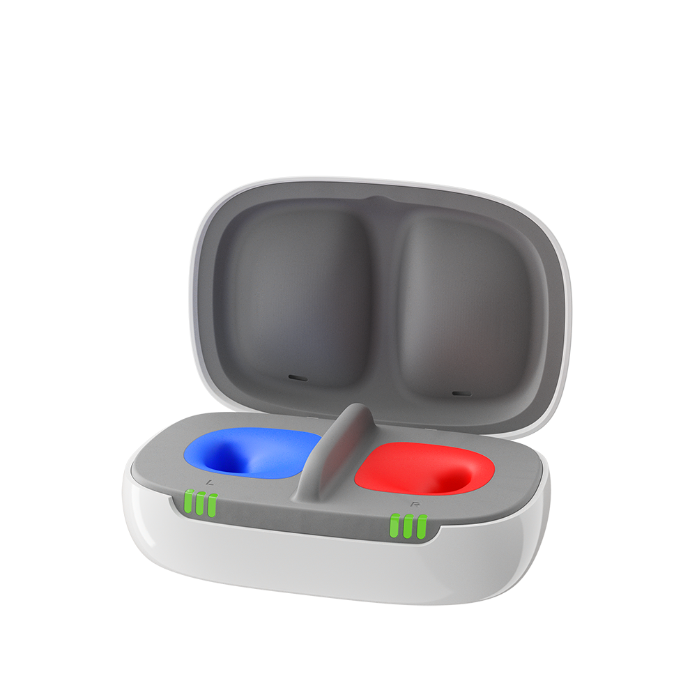 Signia Desktop Charger Insio AX lataa Insio Charge&Go AX -kuulokojeet turvallisesti ja nopeasti. Kompakti, luotettava ja helppokäyttöinen.
