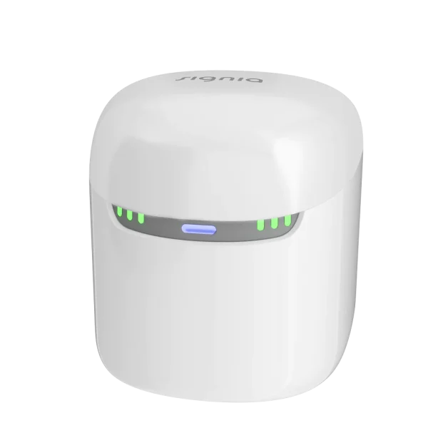 Selkeä LED-merkkivalo näyttää latauksen etenemisen, ja magneettipidike pitää kuulokojeet tukevasti paikallaan. Signia Dry&Clean Charger Styletto on täydellinen kaikille, jotka arvostavat helppoutta, hygieniaa ja luotettavaa kuulokojeiden hoitoa.